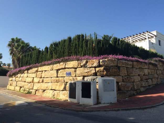 Este muro de escolleras con piedras de Casares tipo «Tacos» que se construyó en Manilva, ya está consolidado, Podemos observar como el manto de vegetación cubre la coronación del muro, integrándolo aún mas en el entorno. Las piedras de escolleras son una excelente solución para la contención de tierras, además son muros que no necesitan mantenimiento,…